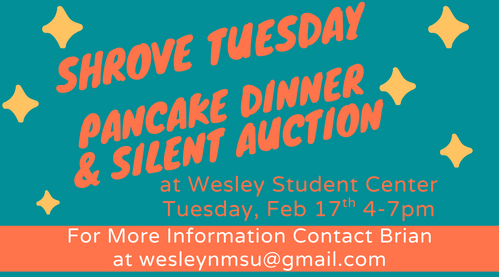 The Wesley Student Center (2425 Jordan Rd.) invites everyone to come down and support their annual Shrove Tuesday Pancake Dinner & Silent Auction fundraiser on Tuesday, February 17 from 4 - 7 PM.